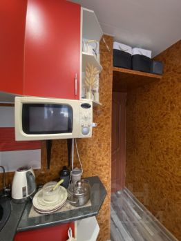 В квартире сделан косметический ремонт. Есть вся необходимая мебель как на кухне, так и в комнате. Из техники — холодильник, микроволновка, стиральная машинка, кондиционер, электрический настенный обогреватель. Проведен интернет.