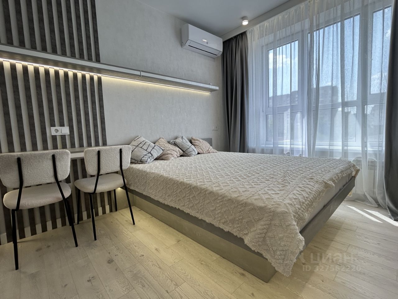 Двуспальная кровать, диван, красивое освещение