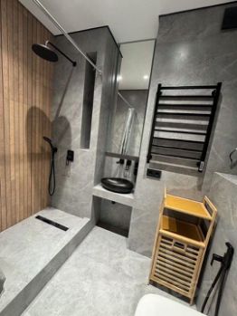 В квартире есть все необходимое для комфортной жизни: кондиционер, холодильник, посудомоечная машина, телевизор и стиральная машина. Просторная кухня оборудована мебелью и техникой, а в комнате есть вся необходимая мебель для отдыха и сна. Ванная комната оснащена душевой кабиной, что делает ежедневные процедуры максимально удобными.