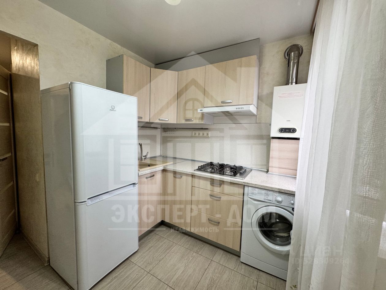 Квартира оснащена встроенной кухней и всей необходимой бытовой техникой.