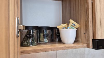 - большой холодильник, посудомоечная машина, микроволновая печь и чайник.