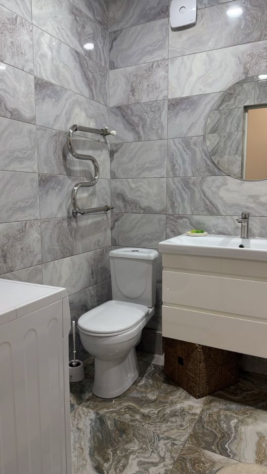 В квартире сделан евроремонт, интерьер выполнен в современном стиле. Из мебели есть все необходимое как на кухне, так и в комнате. Техника включает кондиционер, холодильник, телевизор и стиральную машину — все для вашего комфорта. Санузел совмещенный и оборудован душевой кабиной.