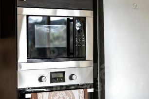 — На первом этаже: 3 изолированных спальни с 2-х местными спальными местами (в одной из них есть кроватка для ребёнка от 0 до 3х лет), и большая гостиная с ещё одним раскладывающимся диваном для 2-х гостей. В гостиной также - кухонная мебель, газовая печь, духовой шкаф, микроволновка, 2 холодильника. Посуда. Смарт-телевизор с колонками. Триколор. А также портативная колонка для воспроизведения музыки с телефона по блютус.