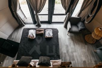 Специальная деревянная лестница ведёт к ещё одному уютному спальному месту, с которого открывается новый вид на номер.