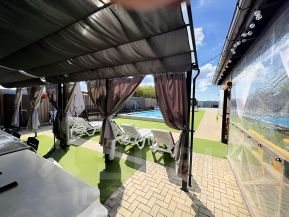 В ДОМЕ вместимость до 30 человек Во дворе Бассейн с подогревом 30, в плюсовую температуру на улице, если мороз 23-24, на огромной территории с беседками открытыми и закрытыми вместимостью 25 и 50 человек.