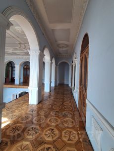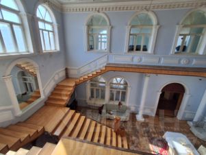 8 изолированных комнат, два санузла, огромный холл и гостинная.