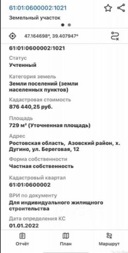 Я собственник, прямая продажа, без посредников через нотариуса или МФЦ, Звоните с радостью отвечу на Ваши вопросы. Кадастровый номер: 61:01:0600002:1021, расположенный по адресу: Ростовская область, Азовский район, х. Дугино, ул. Береговая, 12,