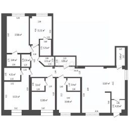 Планировка кабинетная: шесть изолированных помещений площадью от 15 до 25 м², пять из которых оборудованы индивидуальными санузлами с душевыми. Есть общий санузел, просторная зона ожидания для клиентов, тамбур, комната для персонала и подсобное помещение (20 м²) с отдельным входом. Все перегородки не несущие, что позволяет при необходимости объединить пространство под единый зал. Дополнительное преимущество — собственная котельная, обеспечивающая независимость от центрального отопления.