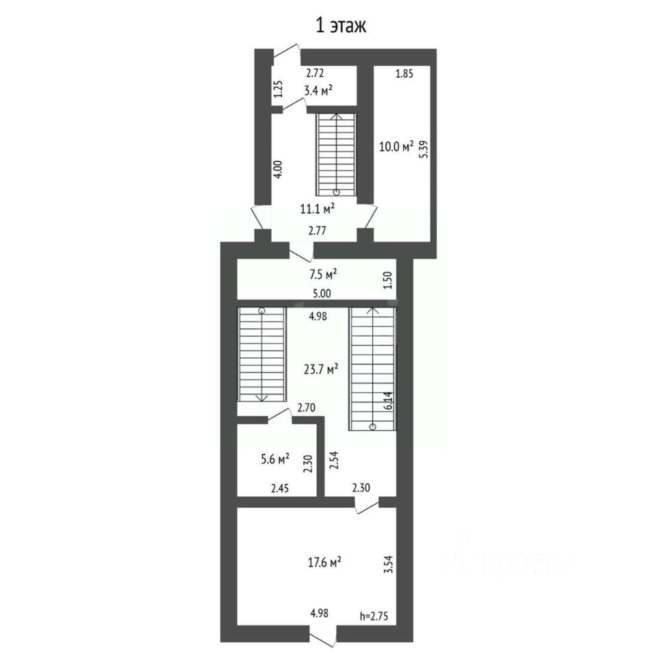 Объект отличается двухуровневой структурой: на первом этаже расположено помещение площадью 5,6 м², идеально подходящее для организации точки продаж или клиентской службы.
