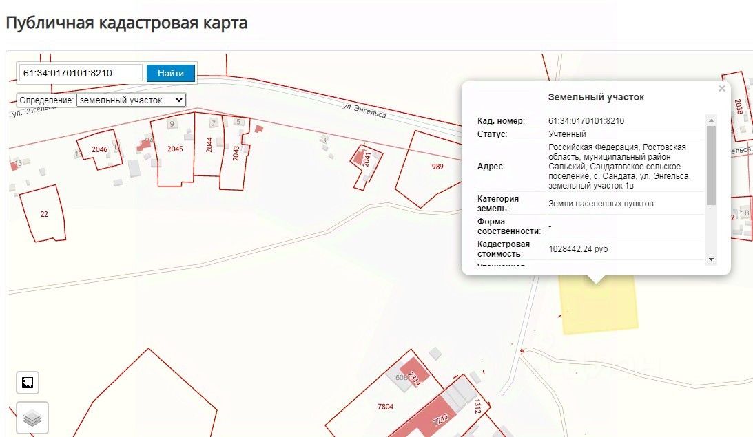 Лот 16 - земельный участок, государственная собственность на который не разграничена, категория земель земли населенных пунктов, разрешенное использование обеспечение сельскохозяйственного производства, площадью 9 981 кв. м, кадастровый 61:34:0170101:8210, адрес (описание местоположения): Российская Федерация, Ростовская область, муниципальный район "Сальский", Сандатовское сельское поселение, с. Сандата, ул. Энгельса, земельный участок 1в