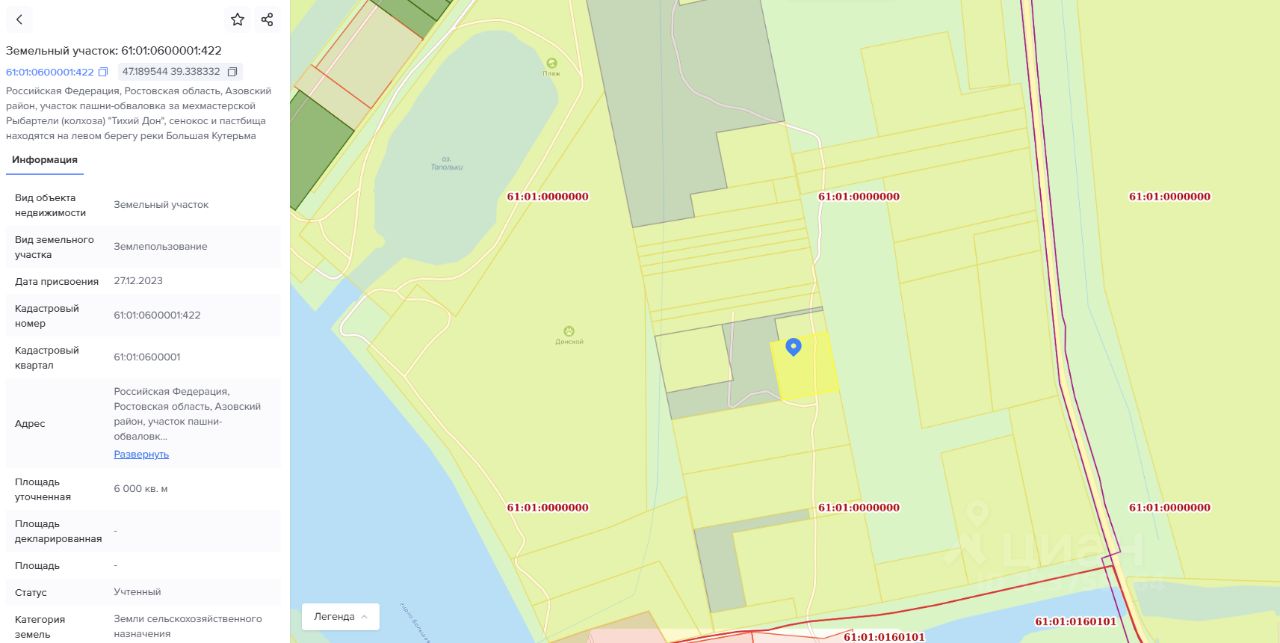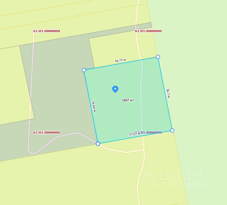 Участок 60 соток ( 67 на 67 метров) .