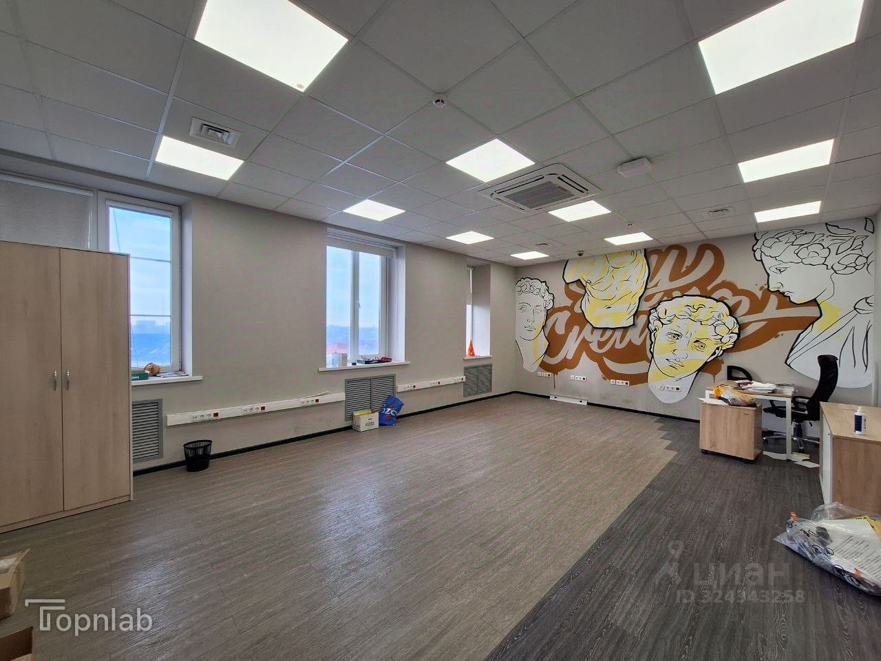 На полу качественная плитка, стены выровнены и окрашены, потолок армстронг в отличном состоянии