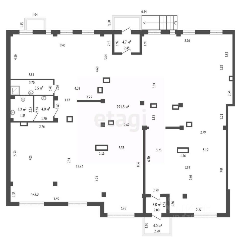 Высота потолков 3 м.