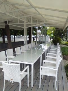 летняя площадка 420 м2, оборудованы беседки и зонтики, укомплектованные мебелью из ротанга;