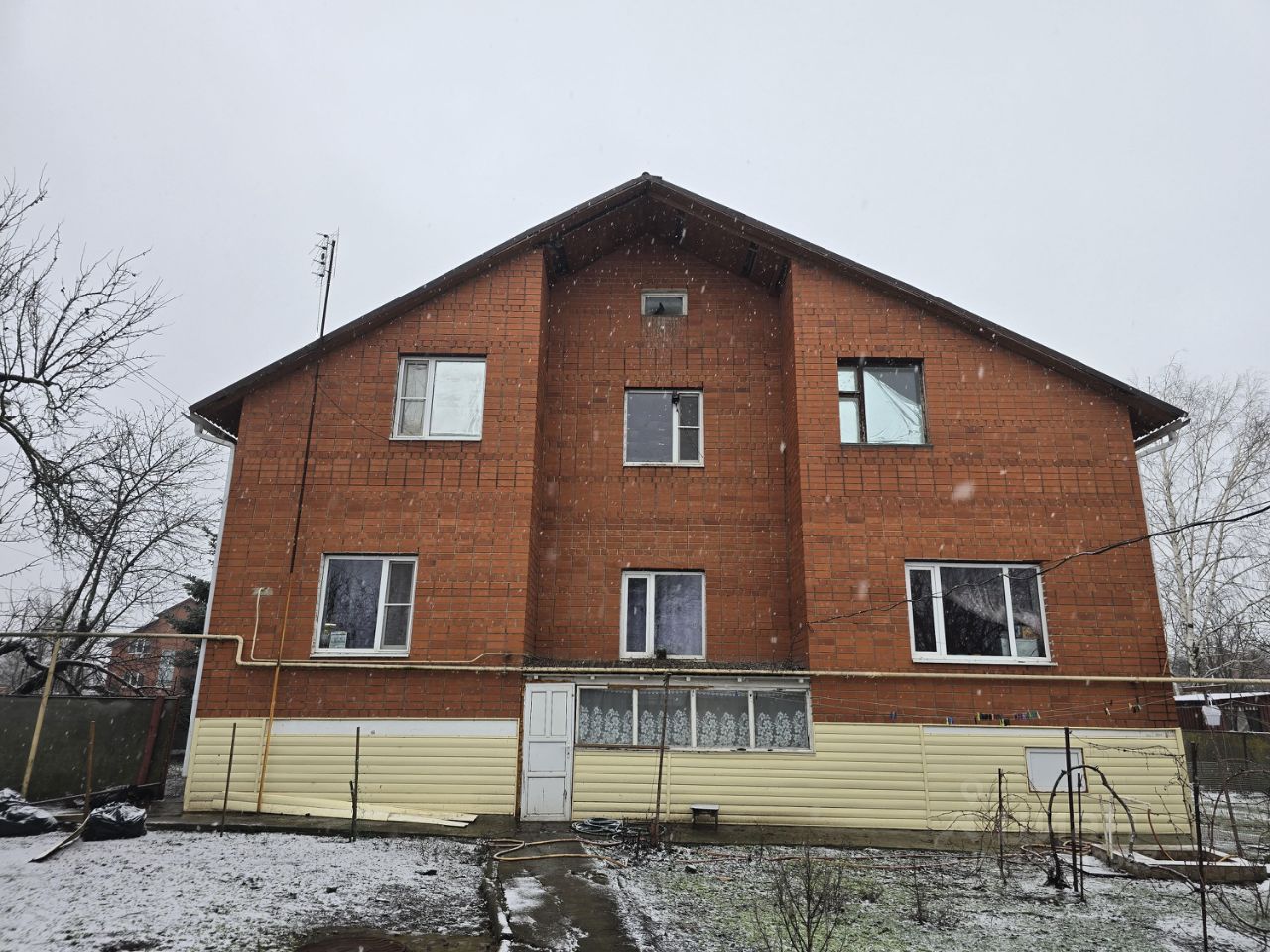 Продаётся дом в хорошем посёлке на улице присутствует хоз постройки душ уличный туалет в Доме 2 этажа и цокольный этаж цокольном этаже есть две комнаты которые можно сделать под жилые и кладовая для закруток также в подвале имеется ванна в доме два туалета пять жилых комнат, в гараж выходит дверь из дома напротив дома школа на следующий садик имеется множество магазинов амбулатория