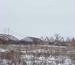 На участке имеются 4 строения (каркас ферм), электричество и газ по меже, асфальтированный подъезд.