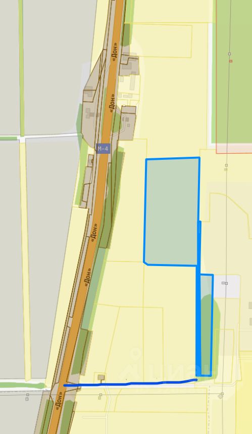 Трасса М-4, 1090 км., за разъездом "Дон" - Самарское шоссе, два участка, 7,1 Га земли с готовым выездом на трассу, перевод земли в промназначение может провести собственник,