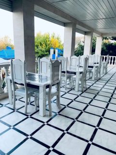 - Гостевой дом "Усадьба" площадью 489 кв.м., включающий 2 двухкомнатных номера (люкс и комфорт), банкетный зал с остекленной верандой на 30 гостей (оснащен кухней с профессиональной техникой);