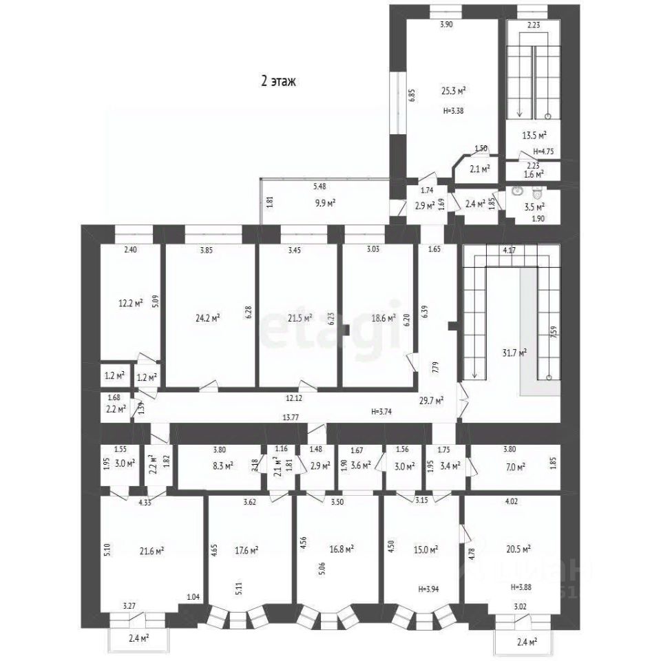 Здание состоит из 4 этажей, что предоставляет широкие возможности для организации пространства. Внутренние помещения можно адаптировать под различные нужды: от офисов и магазинов до образовательных учреждений и медицинских кабинетов.