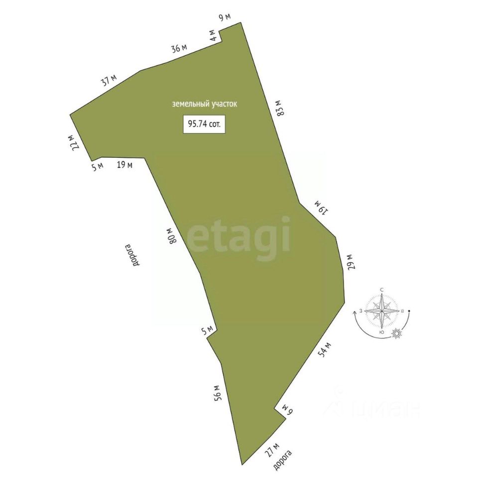 Продается земельный участок большой площади - 9 574 кв.м земли.