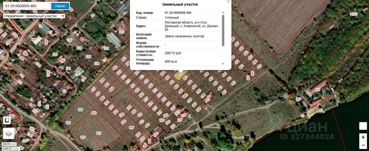 Земельный участок общей площадью 800 м², местоположение: Ростовская область, Усть-Донецкий район, х. Апаринский, ул. Дачная, 83, разрешённое использование ведения садоводства, кадастровый номер 61:39:0600009:460, категория земель "земли населенных пунктов".
