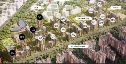 Жилой комплекс с развитой инфраструктурой: 2 детских сада, школа, сквер .