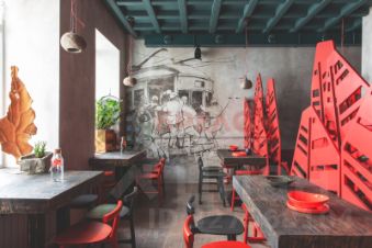 Торговый зал сделан в Восточном стиле. Каменные светильники, деревянные(массив) столешницы, на стенах написаны художником картины. По всем интересующим вопросам звоните.