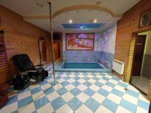 - 1й и 2й этажи 300 кв.м. две сауны, две парилки, бассейн, 7 комнат отдыха;