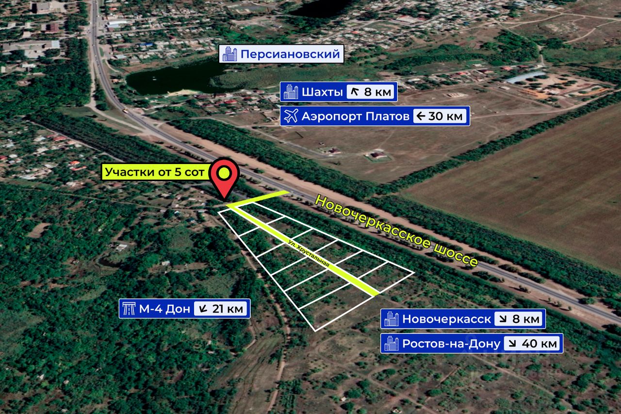Полное обеспечение: В шаговой доступности в Персиановском и Новочеркасске есть всё: супермаркеты (Магнит, Пятерочка), торговые центры, банки, поликлиники, детские сады, школы, кафе и сервисные услуги.