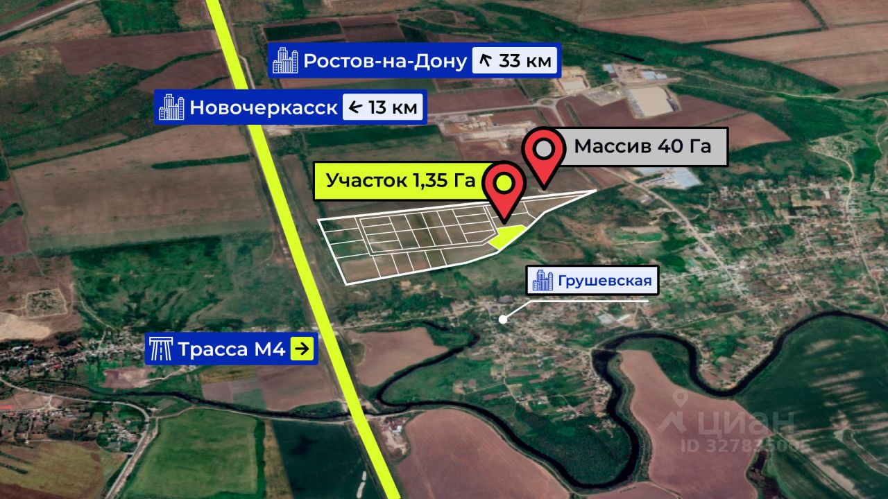 Массив с одной стороны примыкает к автодороге федерального значения М4-Дон и с другой стороны - местного значения Подъезд к ст. Грушевской. Протяженность земельного участка составляет более одного километра.