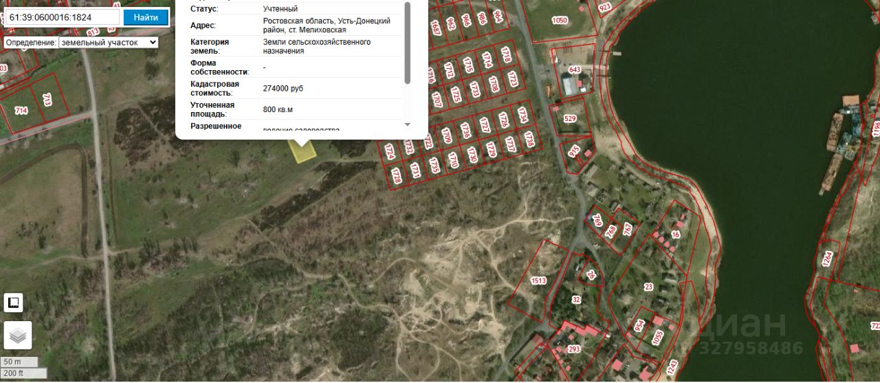 Земельный участок общей площадью 800 м², местоположение: Ростовская область, Усть-Донецкий район, ст.Мелиховская, разрешённое использование ведение садоводства, кадастровый номер 61:39:0600016:1824, категория земель "земли сельскохозяйственного назначения"