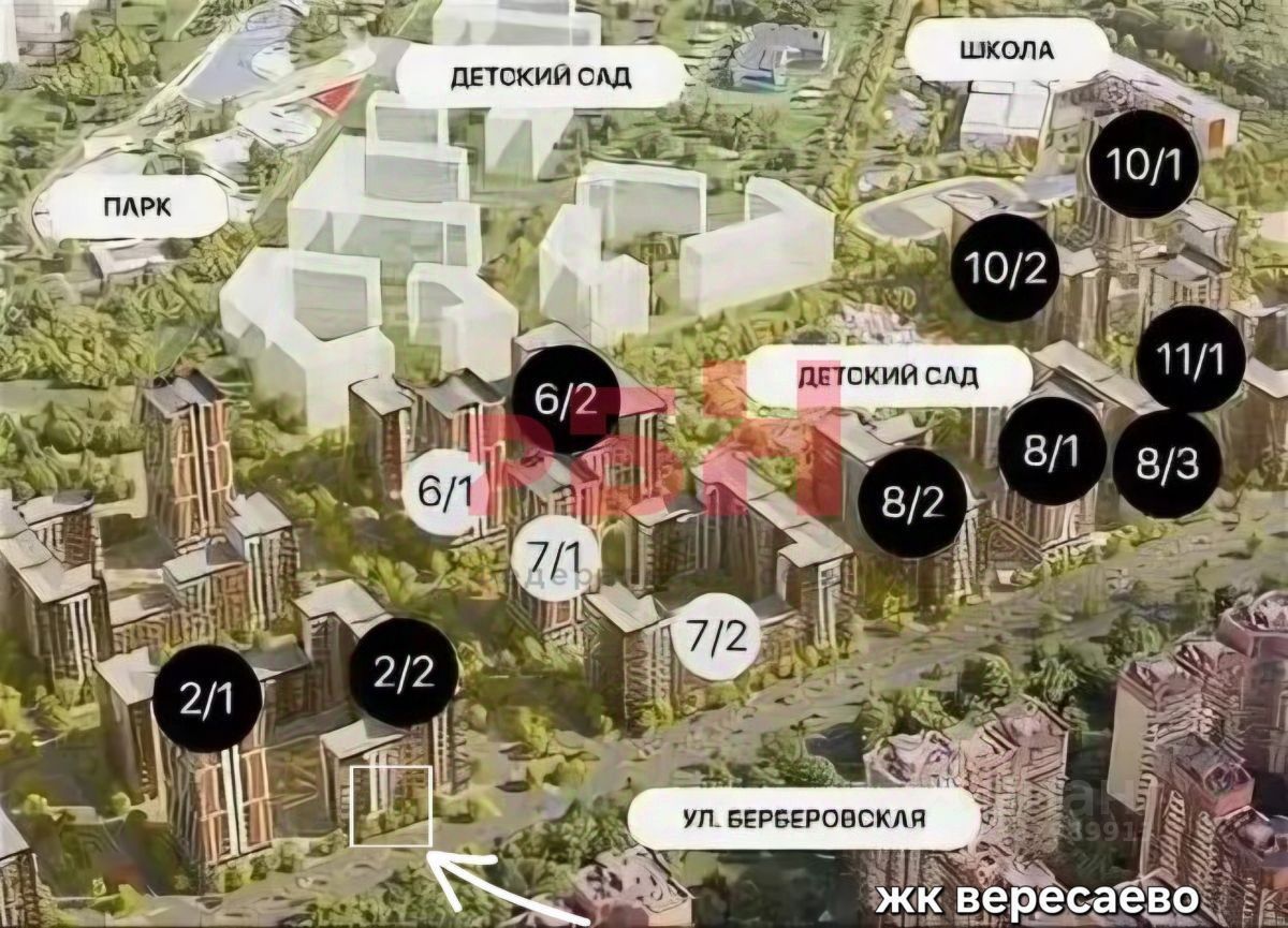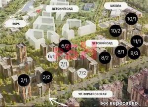 - густонаселенный район, вблизи располагается парк Вересаево, школа, детский сад, продуктовые магазины, аптеки и другое