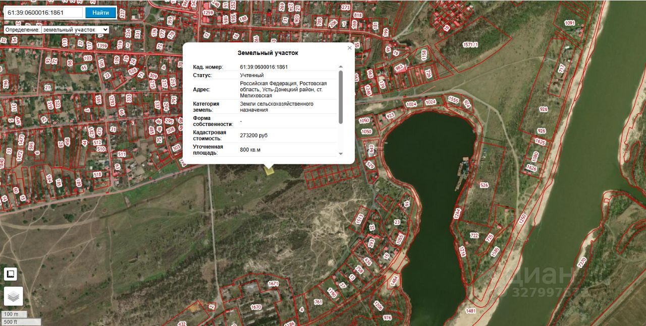 Земельный участок общей площадью 800 м², местоположение: Ростовская область, Усть-Донецкий район, ст.Мелиховская, разрешённое использование ведение садоводства, кадастровый номер 61:39:0600016:1861, категория земель "земли сельскохозяйственного назначения"