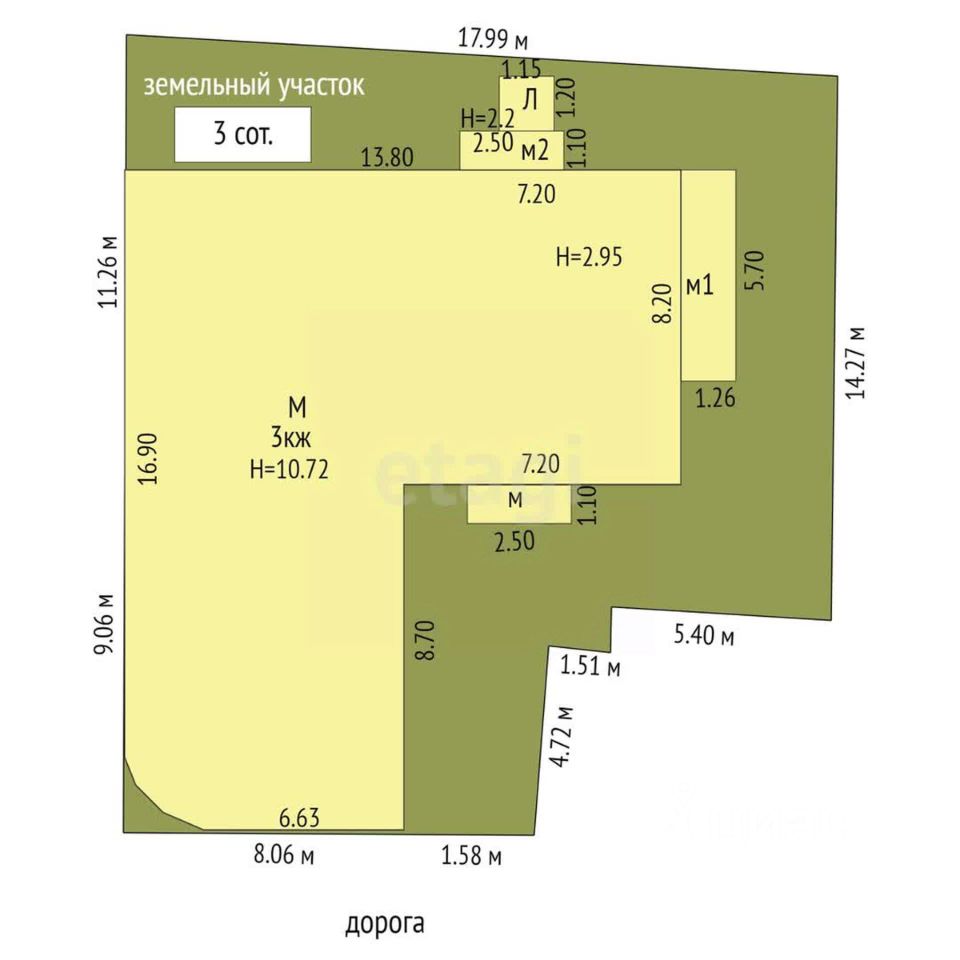 Объект продается вместе с земельным участком в 3 сотки, что обеспечивает не только приватность, но и возможности для расширения или организации собственной территории.