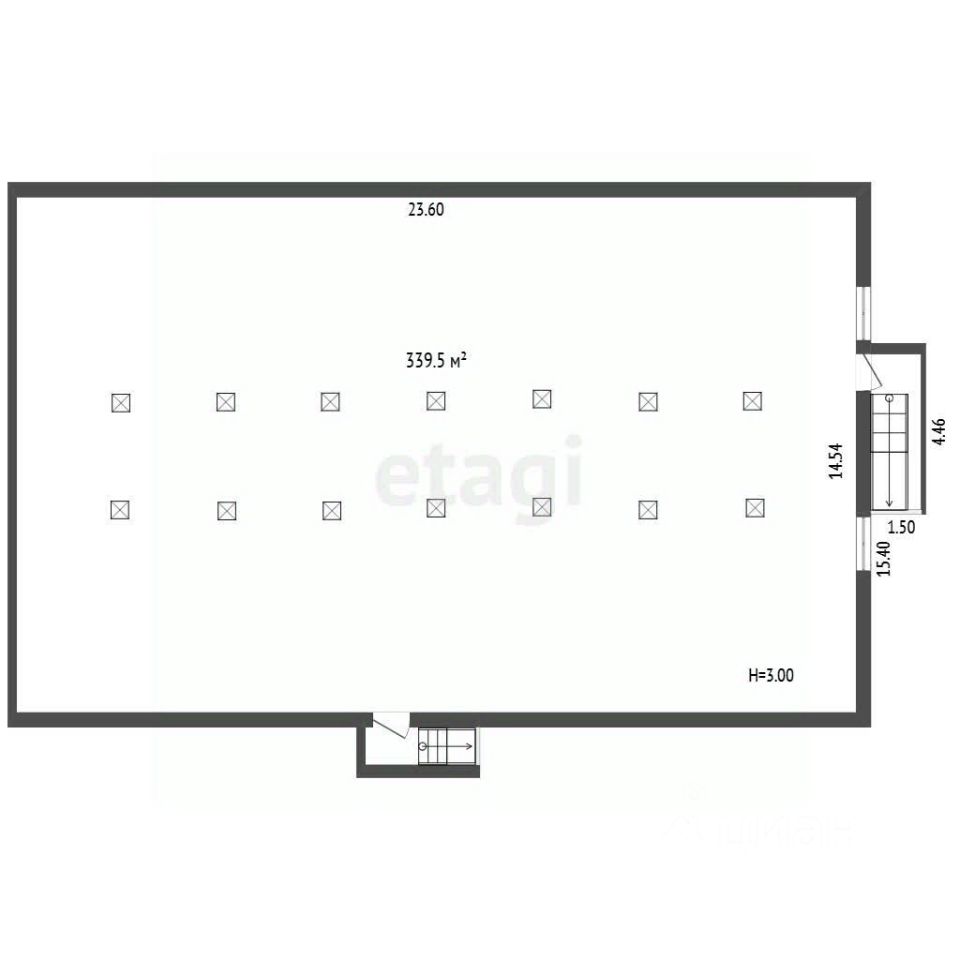 Помещение правильной прямоугольной формы сухое, просторное, чистое. Общая площадь 339,50 кв.м.