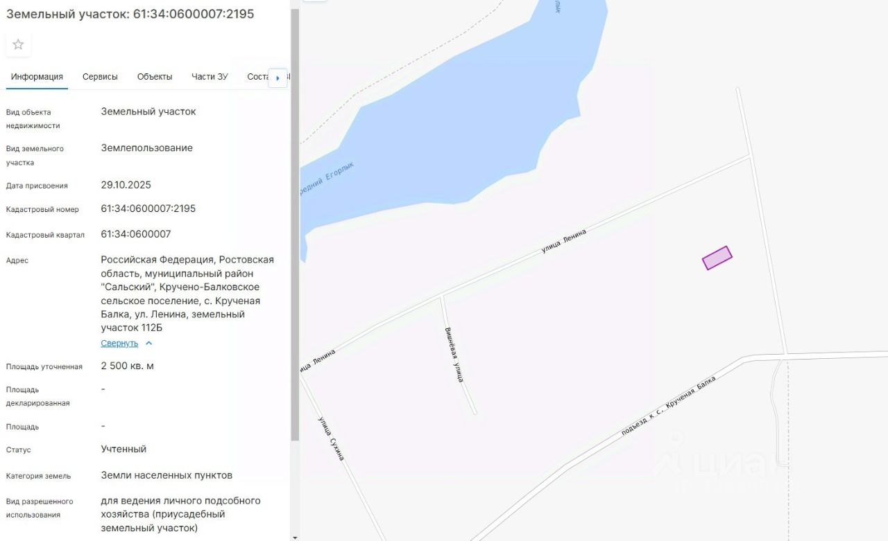 Российская Федерация, Ростовская область, муниципальный район "Сальский", Кручено-Балковское сельское поселение, с. Крученая Балка, ул. Ленина, земельный участок 112Б