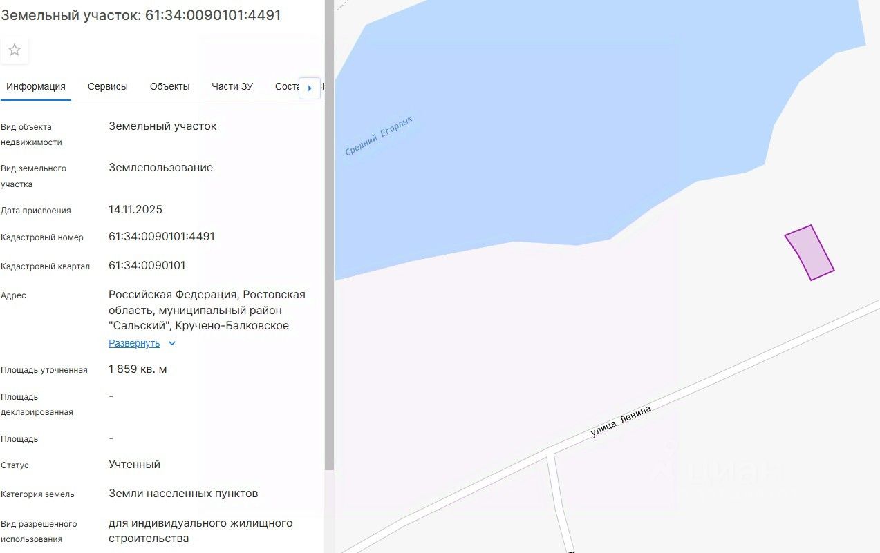Российская Федерация, Ростовская область, муниципальный район "Сальский", Кручено-Балковское сельское поселение, с. Крученая Балка, ул. Ленина, земельный участок 101Б.