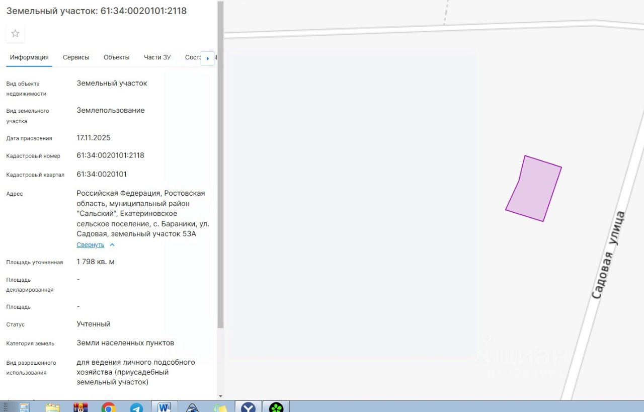 Российская Федерация, Ростовская область, муниципальный район "Сальский", Екатериновское сельское поселение, с. Бараники, ул. Садовая, земельный участок 53А.
