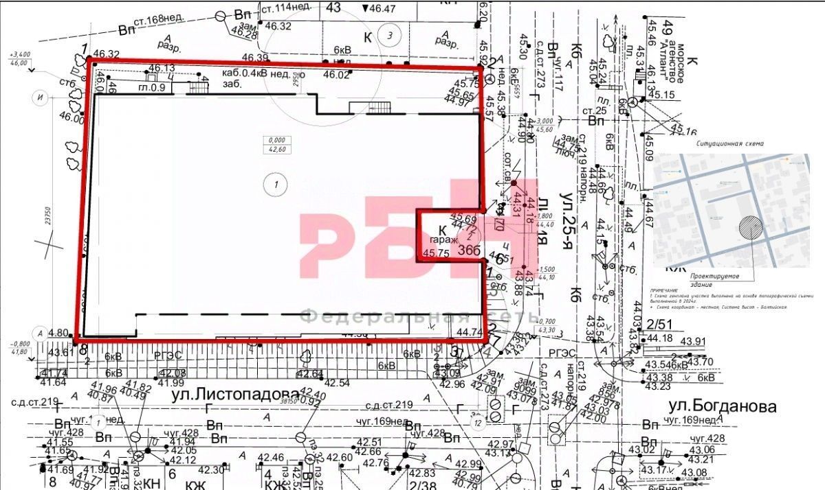 Продается земельный участок площадью 11 соток с проектом здания площадью 1500 кв. м, по адресу: улица 25-я Линия, 36