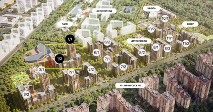 Помещение находится в новом жилом комплексе на ул. Берберовская, район старого аэропорта. В пешей доступности детский сад, школа и громадный жилой комплекс. Открытая территория. Вокруг ведется строительство еще 2х больших комплексов и парка.