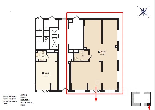 - площадь 114,8 кв.м.;