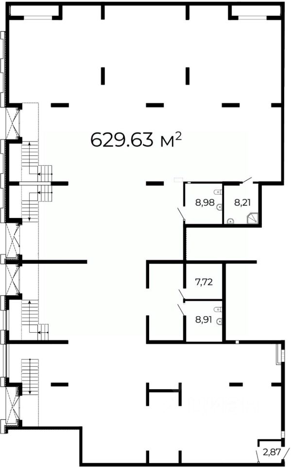 Помещение свободного назначения на -1 этаже, общая площадь 629.63 кв.м.