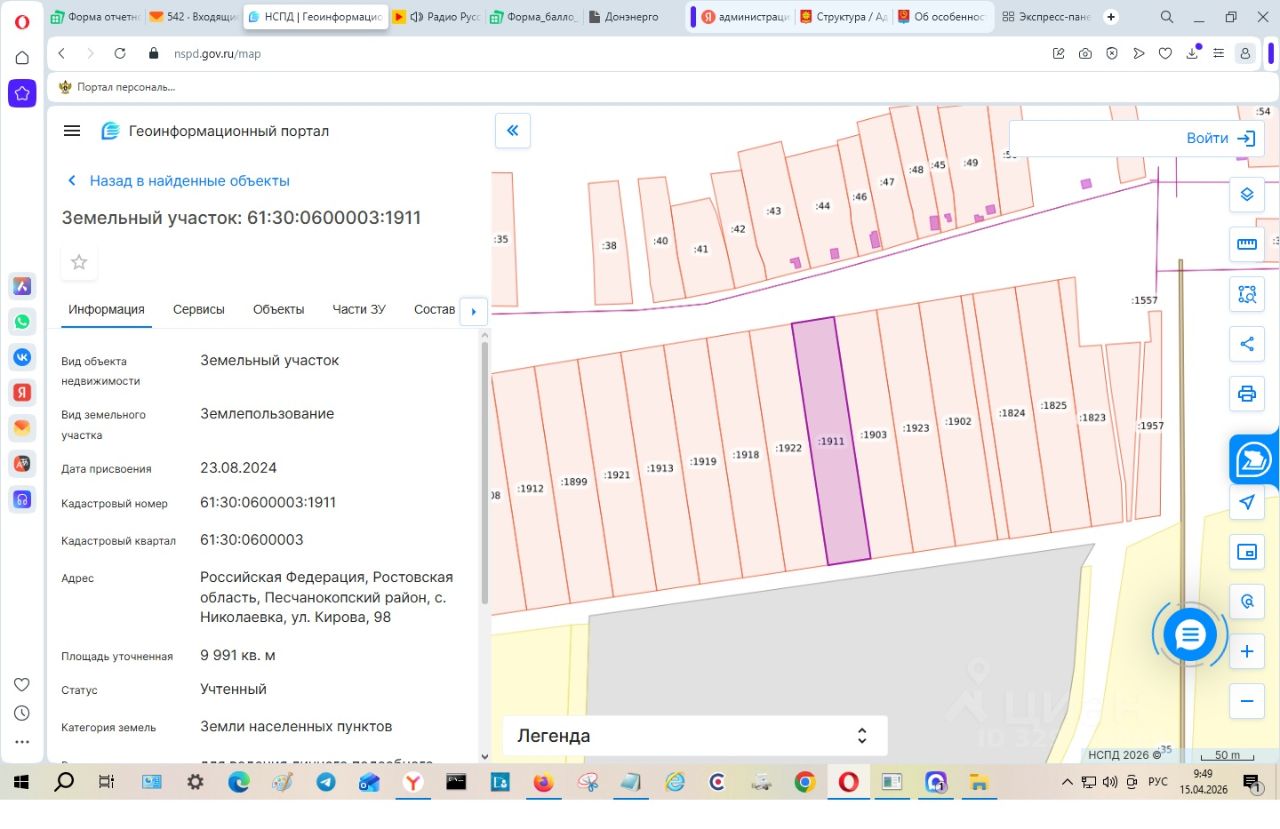 Земельный участок из состава земель населенных пунктов, площадью 9991 кв.м., с разрешенным использованием для ведения личного подсобного хозяйства (приусадебный земельный участок), расположенный по адресу: Российская Федерация, Ростовская область, Песчанокопский район, с. Николаевка, ул. Кирова, 98