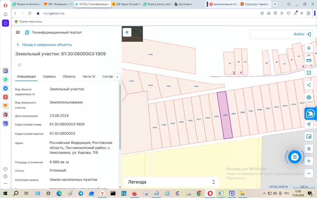 Земельный участок из состава земель населенных пунктов, площадью 9989 кв.м., с разрешенным использованием для ведения личного подсобного хозяйства (приусадебный земельный участок), расположенный по адресу: Российская Федерация, Ростовская область, Песчанокопский район, с. Николаевка, ул. Кирова, 118