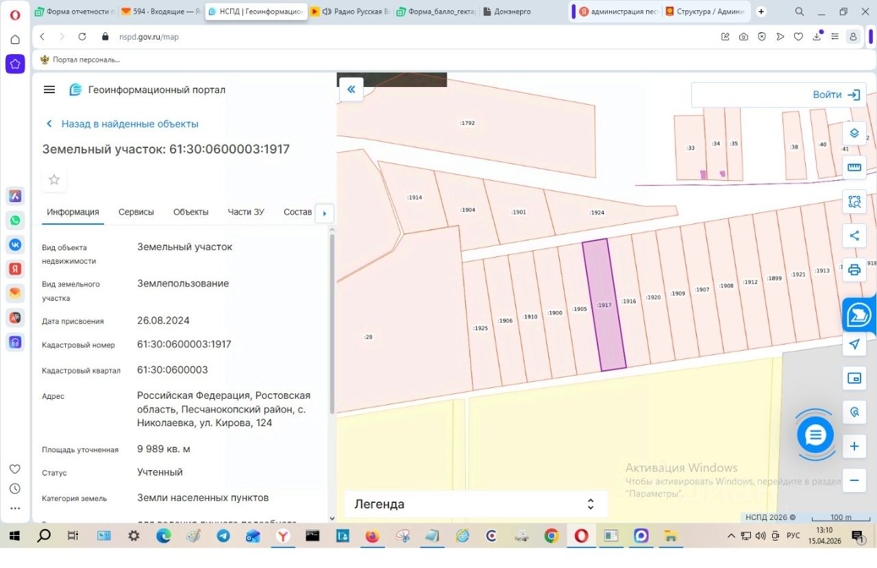 Земельный участок из состава земель населенных пунктов, площадью 9989 кв.м., с разрешенным использованием для ведения личного подсобного хозяйства (приусадебный земельный участок), расположенный по адресу: Российская Федерация, Ростовская область, Песчанокопский район, с. Николаевка, ул. Кирова, 124