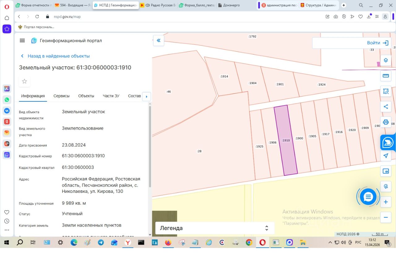 Земельный участок из состава земель населенных пунктов, площадью 9989 кв.м., с разрешенным использованием для ведения личного подсобного хозяйства (приусадебный земельный участок), расположенный по адресу: Российская Федерация, Ростовская область, Песчанокопский район, с. Николаевка, ул. Кирова, 130