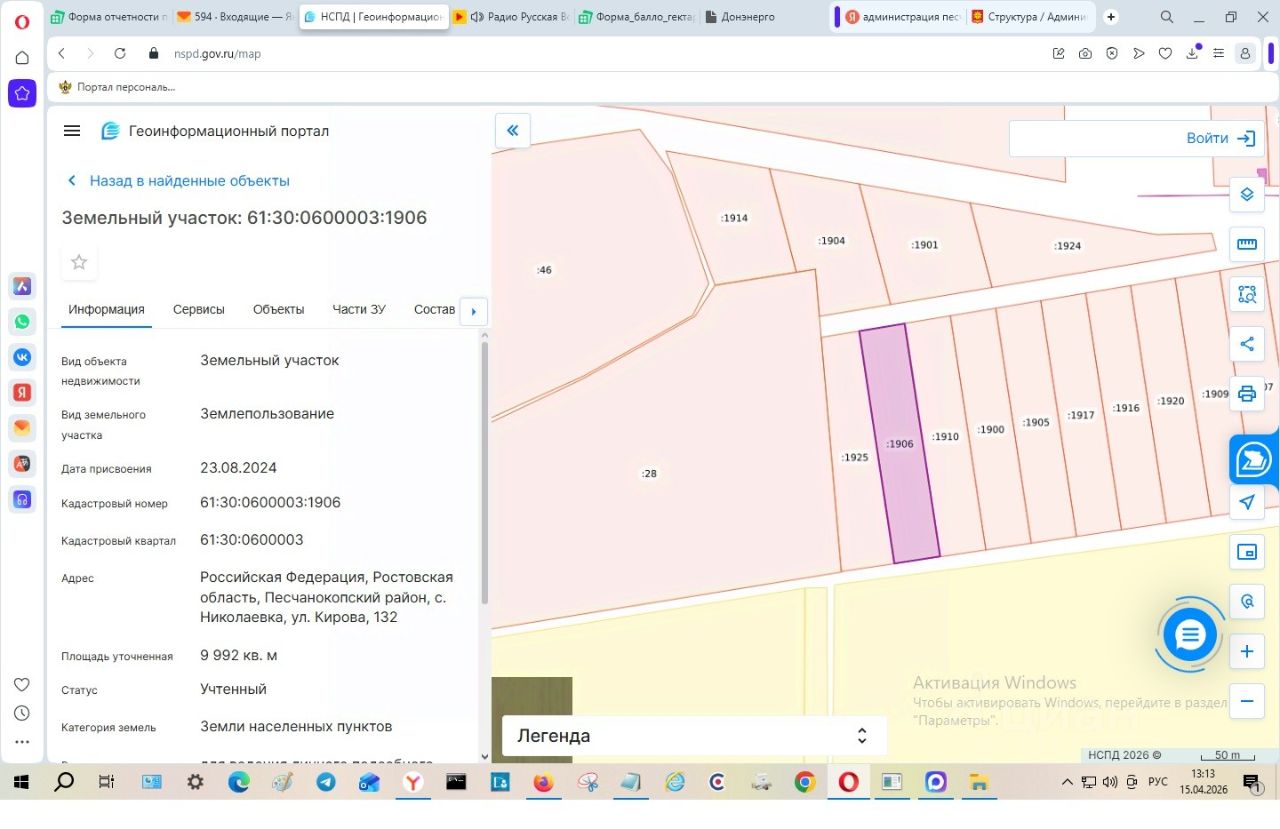 Земельный участок из состава земель населенных пунктов, площадью 9992 кв.м., с разрешенным использованием для ведения личного подсобного хозяйства (приусадебный земельный участок), расположенный по адресу: Российская Федерация, Ростовская область, Песчанокопский район, с. Николаевка, ул. Кирова, 132