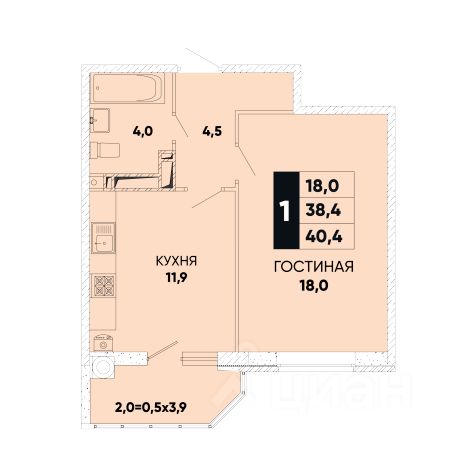 Однокомнатная квартира с ПАНОРАМНЫМ видом, в одном из лучших жилых комплексов города, 40,4/18/11,9