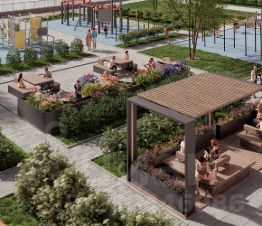 Во дворе предусмотрены зоны отдыха, чтобы жители могли расслабиться за стаканчиком кофе на свежем воздухе. Классные детские и спортивные площадки оснащены современным оборудованием, где весело играть жителям любого возраста. Покрытие из резиновой крошки сделает прогулку безопасной и предотвратит появление луж. Во дворе высажены деревья, кустарники и декоративные растения, а ещё здесь появится широкая прогулочная аллея, ведущая к храму Петра и Февронии.