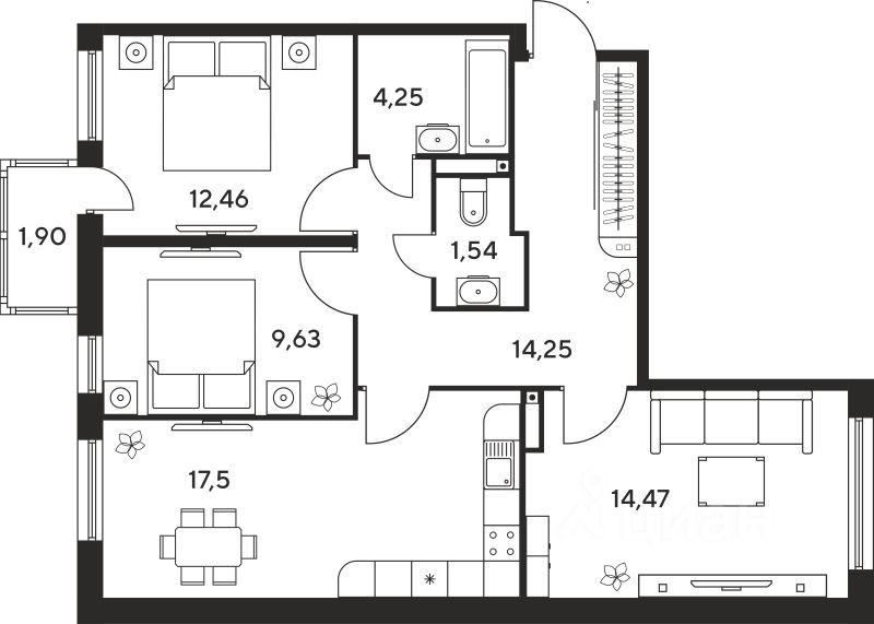17,5 м²
